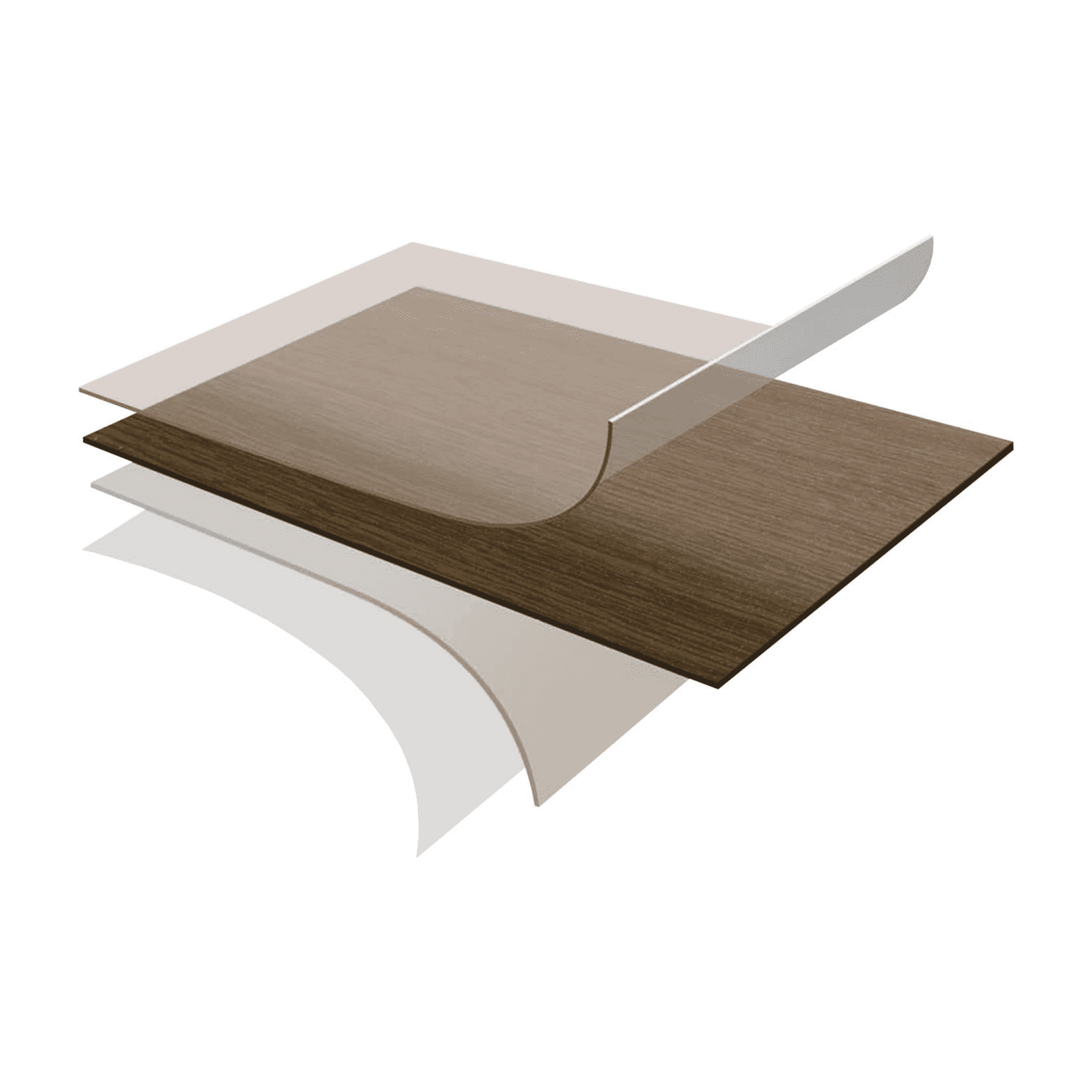 1. Warstwa ochronna, 2. Bazowa warstwa dekoracyjna, 3. Klej, 4. Papier ochronny.
