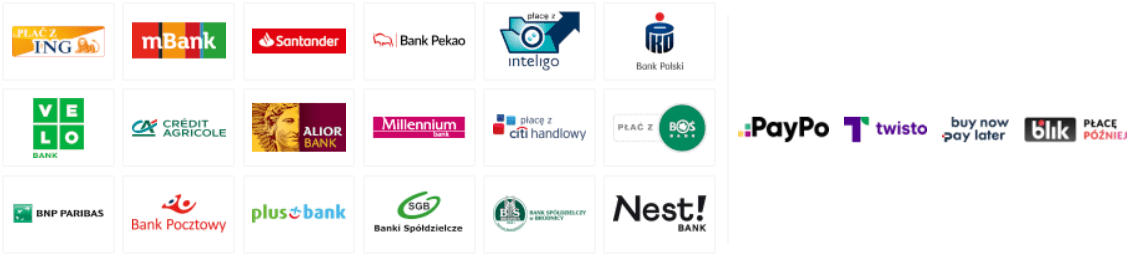 W naszym sklepie oferujemy kilka wygodnych metod płatności, aby dobrać opcję najlepiej dopasowaną do swoich potrzeb: