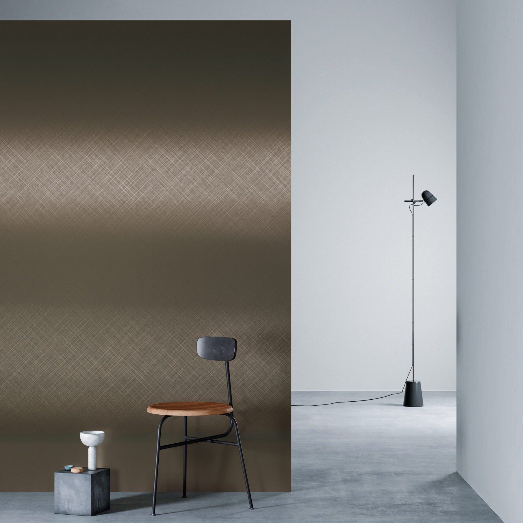 3M DI-NOC to innowacyjne wykończenie architektoniczne, które stanowi stylową alternatywę dla tradycyjnych metali. Łączy w sobie wyszukany wygląd z praktycznością i łatwością montażu, pozwalając projektantom uzyskać efekt luksusowego wykończenia przy zachowaniu funkcjonalności. Wzór VM-1488 wyróżnia się subtelnym, diagonalnym rysunkiem szczotkowanego metalu w unikalnym odcieniu czarnego złota. To idealne rozwiązanie dla wnętrz, w których liczy się nowoczesna estetyka i trwałość, wspierana przez technologię 3M.