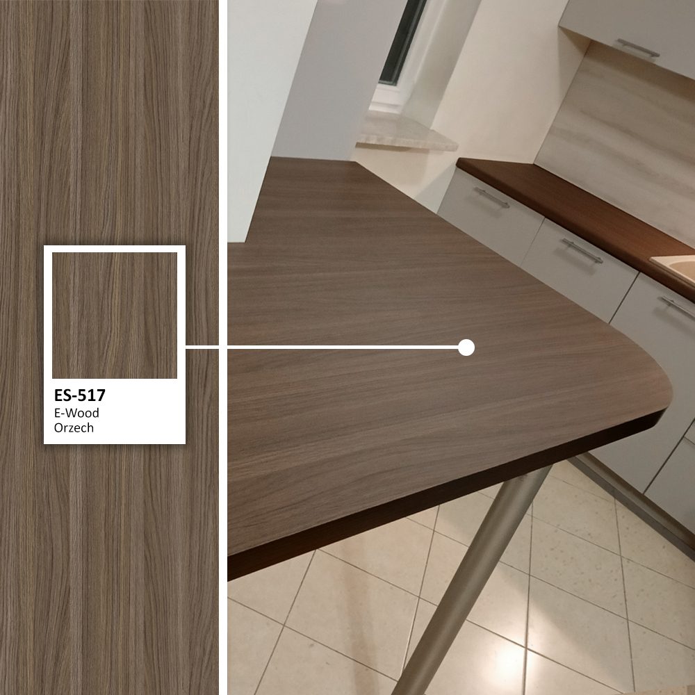 Dekor ES-517 świetnie sprawdza się w nowoczesnych, minimalistycznych i klasycznych aranżacjach. Tworzy neutralne tło dla mebli, tkanin i dodatków. Laminat doskonale współgra z metalem, szkłem, kamieniem i betonem. Dzięki temu wnętrza zyskują stylowy i uporządkowany wygląd.