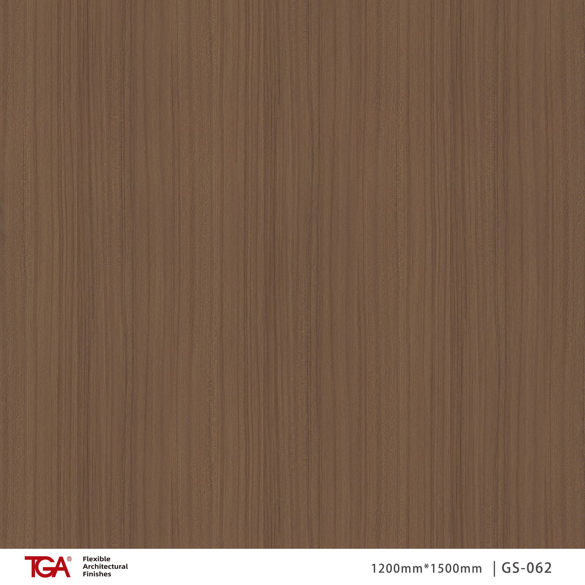 TGA GS-062 z kolekcji GS to laminat inspirowany naturalnym drewnem teakowym. Utrzymany jest w ciepłym, eleganckim odcieniu brązu. Delikatny, liniowy rysunek nadaje powierzchni spokojny i wyważony charakter. Dekor prezentuje się nowocześnie, zachowując naturalną estetykę drewna.