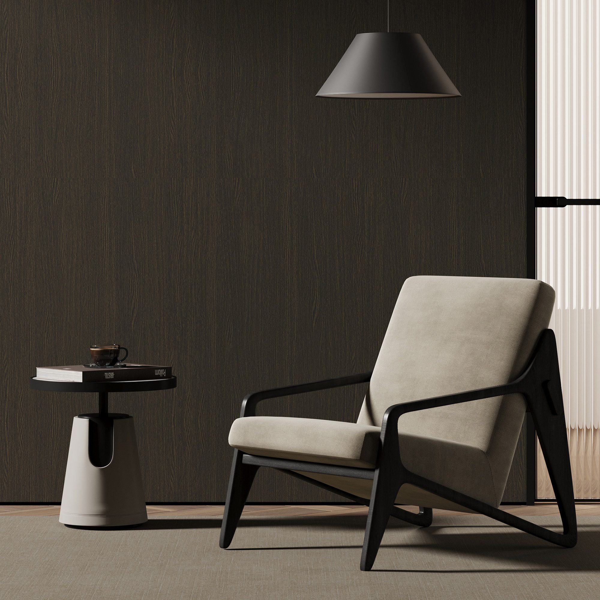 GS-078 wprowadza do wnętrz atmosferę intymności i klasy. Doskonale sprawdza się w aranżacjach nowoczesnych, minimalistycznych oraz eleganckich. Stanowi mocne, ale nienachalne tło dla jasnych mebli tapicerowanych i czarnych detali. Bardzo dobrze komponuje się z metalem, szkłem oraz miękkimi tkaninami.