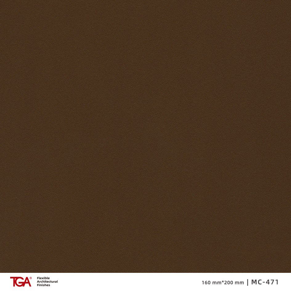 Laminat MC‑471 ma elegancki, gładki odcień ciemnej miedzi z subtelnym rdzawym tonem i metalicznym połyskiem. Jednolita powierzchnia podkreśla nowoczesny i luksusowy charakter materiału, wprowadzając ciepłą, industrialną estetykę.