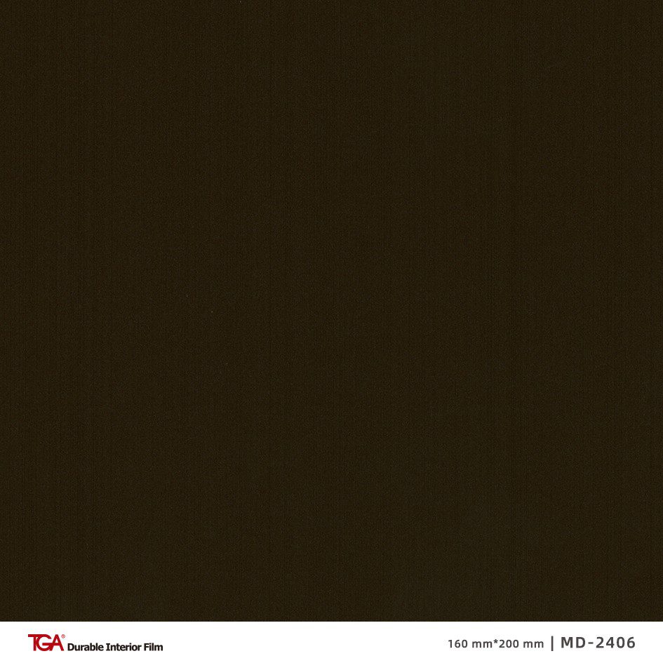 Laminat TGA MD-2406 prezentuje elegancki, szczotkowany odcień ciemnego brązu z subtelnym, metalicznym połyskiem. Jego powierzchnia wyróżnia się delikatną, regularną fakturą, która przy świetle podkreśla głębię koloru i nadaje materiałowi nowoczesny, industrialny charakter.