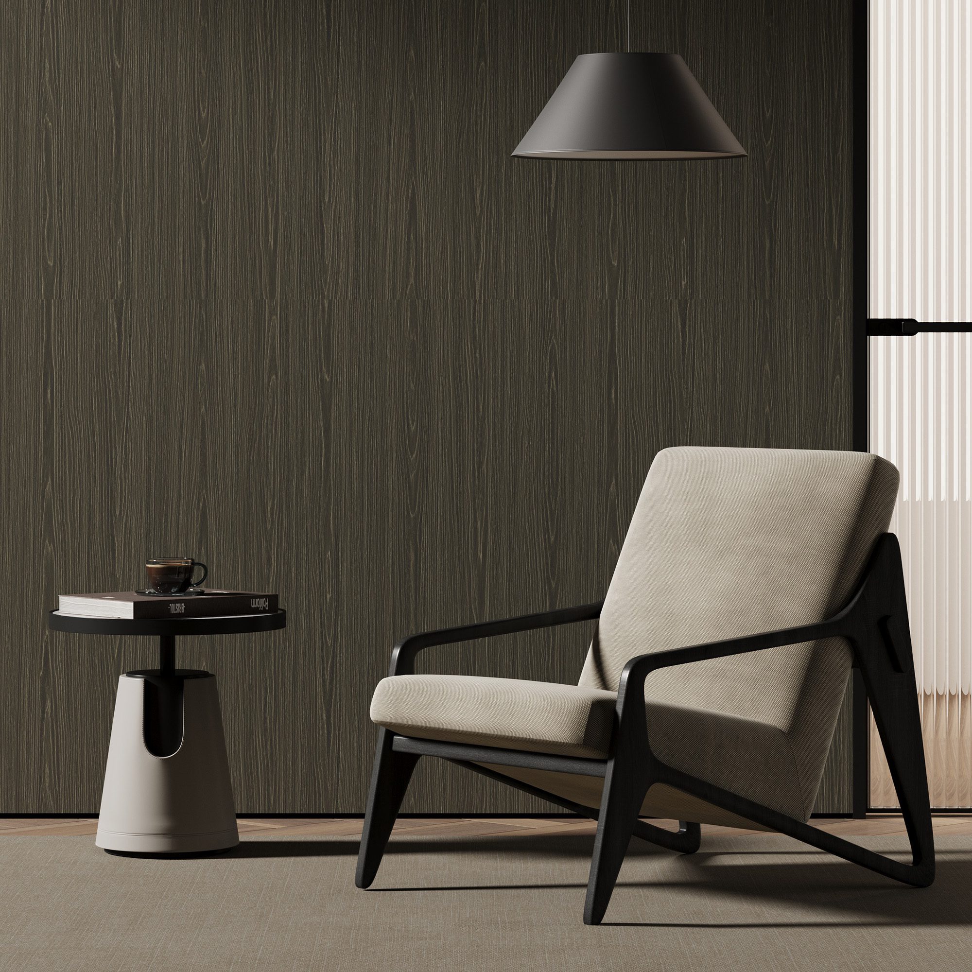 Ciemniejsza kolorystyka WS-2005 wprowadza do wnętrz poczucie głębi i stabilności. Laminat stanowi mocny, ale wyważony akcent aranżacyjny. Doskonale komponuje się z jasnymi tkaninami, czarnymi detalami oraz elementami z metalu i szkła. Dobrze współgra również z betonem architektonicznym i kamieniem.